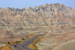 バッドランド国立公園 悪い土地とでも訳すのだろうか。水が少なくて木は育たず、湿気があるから沙漠にもならず、そのため草しか育たない広大な平原地帯が広がる。その大草原 Buffalo Gap National Grasslandの真っただ中に、この公園はある。しかも公園内は地球とは思われない土地で耕作は不可能、そのためについた名前のようだ。 しかしこの荒れた土地を訪れた印象は、言葉から受けるイメージを一新する風景で魅力的、ビフティフルランド 美しい国立公園だった。 大草原の中を走っているといつの間にか断崖の上になっていた。断崖が落ち込んだその先は荒々しく瘤のような岩山が連なって不思議な風景となっている。 さらに進むと夕日に照らされ金色に輝いている地形 イエロー・マウンズ にであった。何故このような不可思議な地層なのだろうか。 朝尖塔のように先のとがった岩山を訪れる。朝日があたり山頂が赤く燃える。まだトレイルを訪れるひとはおらず静かな空気だ。振り向くと1頭のビッグホーンシープが道に沿って歩き私の近くまで来ていた。カメラを向けたら、立ちどまって私に顔を向け、どうぞと言ったように思えた。 親子4人がトレイルヘッドから入ってきて、楽しそうに話を交わしながら細い道に向っていった。見慣れない景色が続き、展望台から見る景色はすてきだったが、ドライブしながら車から見える風景も楽しいものだった。 撮影日 2017.9・1〜9.2 撮影地 アメリカ サウスダコタ州 バッドランド国立公園 |