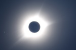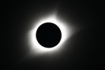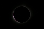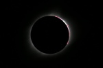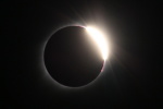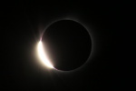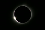 雲ひとつない快晴の青空の中、太陽が欠けていく。数百人を越える人々が空を見上げて部分日食の進行を観察をしているが、静かで物音がしない。80%も欠けただろうか。先ほどまでに比べて幾分暗くなったようだ。 太陽が見えなくなると思った瞬間、丸い円の左下が大きな光となって輝きを増した。ダイヤモンドリンクだ。大きな歓声が沸き起こる。カメラのシャッターを切る音が、パシャ、パシャとあちらからもこちらからも聞こえる。ひとわたりシャッターの音がして、再び静寂にもどる。 光がなくなり美しいコロナが広がっている。繊細で優美、細い幾筋ものトコロテン色の筋が長く伸びている。10倍率の双眼鏡で眺める。さらに美しい。神秘的で表現できない。感動と興奮が全身をつつむ。 右上に小さな丸い光が現れた。周辺の赤いプロミスが幾つか吹き出している。光は次第に大きく輝き、再び太陽の姿が見えるようになった。僅か2分48秒と短い皆既食だったが、こころに焼き付き、撮影した写真でいつまでも想い出に残る。 写真撮影 レンズ 500mm 絞りf:8.0 ISO:100 シャッタースピード 1/4000〜2/1 1段差で14カット コロナ写真 14カットの画像を合成処理 ダイヤモンド・リンク 1カットの写真 撮影日 2017.8.21 撮影地 アメリカ ネブラスカ州 スコッツブラフの北50km 写真撮影 尾崎信也 画像処理 山内 久 |